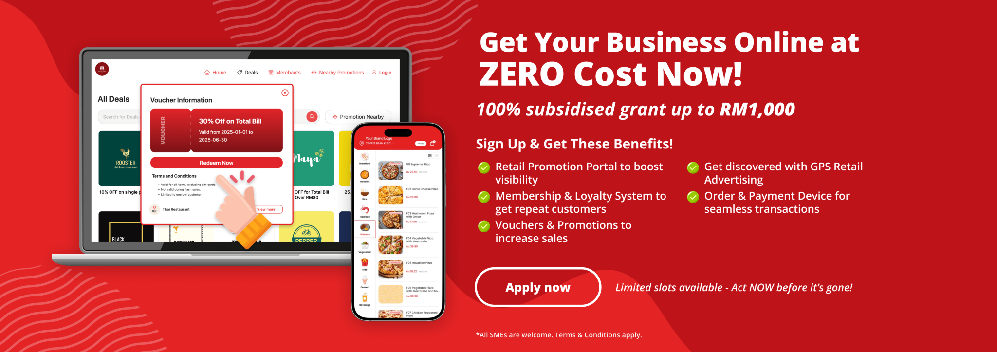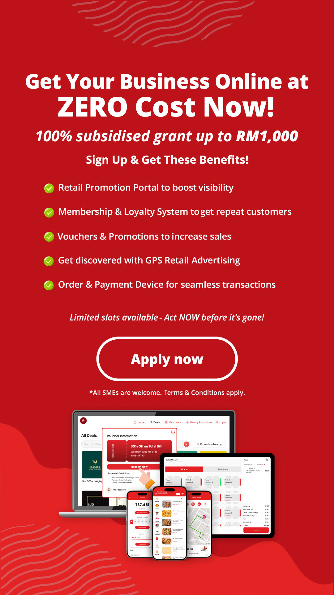 Eligible businesses can receive a 100% subsidy grant of up to RM1,000 from the